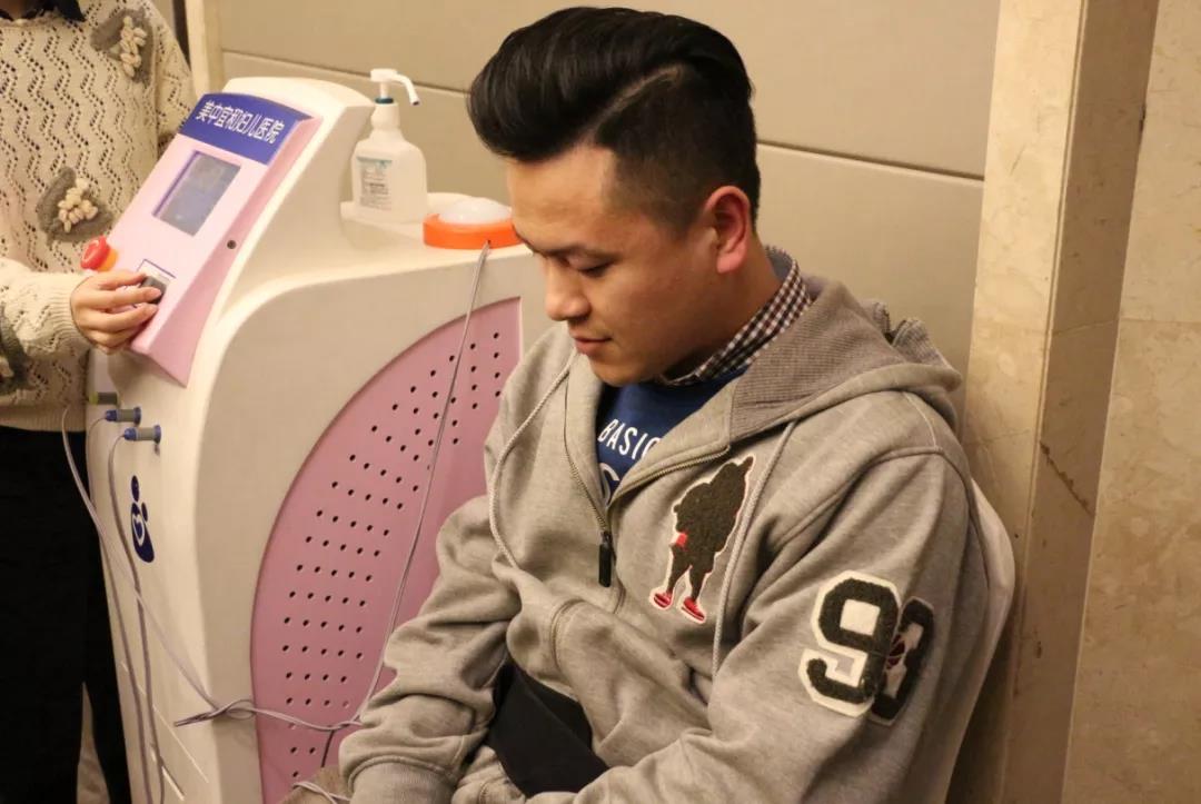 排隊(duì)等候,眾人圍觀的總是美中的重頭戲:分娩陣痛體驗(yàn)。