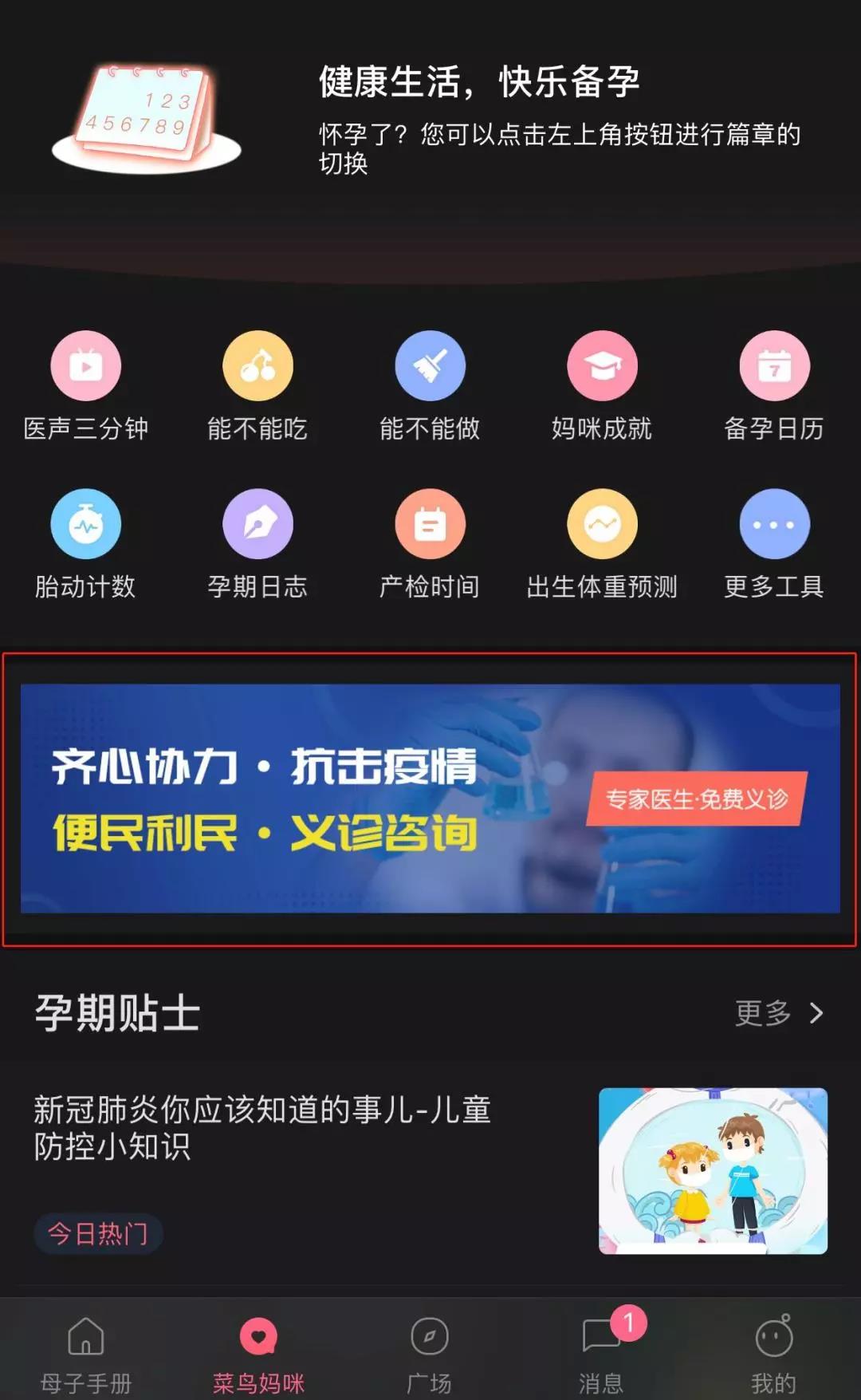 下載母子健康手冊app,在特色服務欄目中點擊“互聯網醫院”,進入頁面后選擇醫生開始咨詢。