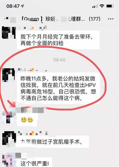 上圖是某群的聊天記錄,可以看出一位網友的長輩查出來HPV病毒高危16型,導致很惶恐,不知所措。