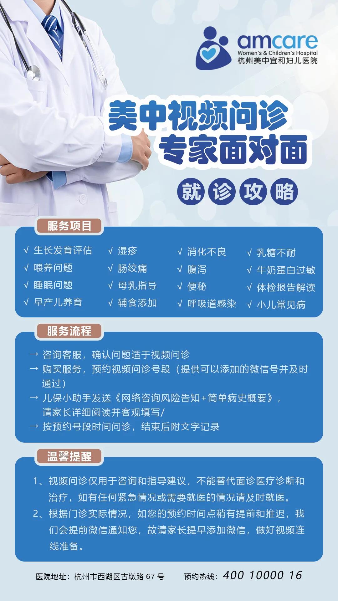 目前,疫情有所緩解,美中宜和兒童保健科門診、兒外科門診也已經正常開診。為了保障母嬰健康,杭州美中宜和婦兒醫院已采取了一系列防護措施,全方位保障就醫安全。有就診需要的寶媽可先線上預約問診,必要時到院就診;也可預約直接到院就診。