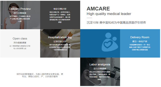 2015年3月26日,美中宜和醫療集團杭州美中宜和婦兒醫院盛大開業。目前,美中宜和醫療集團已經擁有北京、天津、杭州、深圳等7家醫療及護理機構,杭州是美中宜和在長三角布局的站,毗鄰西溪濕地。據了解,作為杭州地區體量大且涵蓋業務范圍全的杭州私立婦產醫院,杭州美中宜和院區占地14000余平米,地上12層,地下2層。設有產科病房、兒科病房和新生兒科病房共82間,LDR分娩休息一體化產房3間,并配備3間萬級層流凈化手術室和產后修養中心,提供如杭州無痛分娩、家屬陪產等個性化服務,同時是杭州一家設立專業的新生兒科重癥監護室(NICU)的私立醫院。