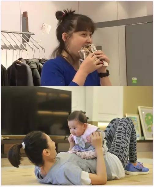 兩人年齡相仿,在身材、皮膚狀態(tài)、氣質(zhì)上都出現(xiàn)了截然不同的差距。面對(duì)鏡頭梅婷依然毫無(wú)顧忌地吃吃吃,賈靜雯卻抱著女兒在做運(yùn)動(dòng)。
