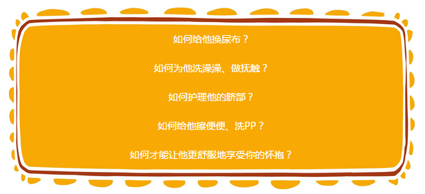 期待已久的寶寶即將降生,就要做爸爸媽媽的您,除了興奮激動(dòng)欣喜之外,是不是還有一點(diǎn)點(diǎn)地不知所措呢?從TA出生開(kāi)始,這個(gè)新生命就完全地、無(wú)條件地依賴(lài)你、信任你,你該如何去保護(hù)TA、照顧TA呢?如何給他換尿布?如何為他洗澡如何護(hù)如何給他擦便便如何才能讓他更舒服地享受你的懷抱?