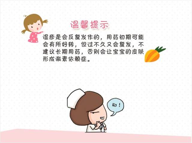 在濕疹的治療中,媽媽們往往會談“激素”色變,某些寶寶在醫生指導下安全合理使用含激素軟膏,是有一定必要性的,短期皮膚表面使用并不會導致嚴重后果。但需要避免長期使用,也需要避免因“害怕”而斷斷續續不按規定使用。