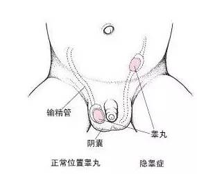 一般說來,孩子還在娘胎里時,睪丸位于腹腔中。隨著孕期的延長,睪丸逐漸下降,孕第9個月時可降入陰囊內,因此孩子呱呱墜地后大多數都能在陰囊內觸摸到睪丸。假如出生后睪丸仍未下降到陰囊,醫學上稱為隱睪癥。隱睪癥可能影響睪丸產生精子和雄激素的功能,成年后影響生育,并且隱睪癥的患兒成年后發生睪丸癌的幾率相對要高。建議1-2歲之內手術治療。