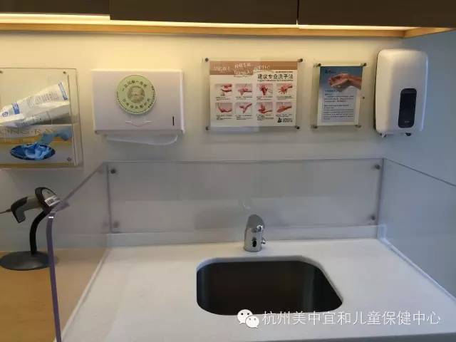 (圖片取自杭州美中宜和婦兒醫(yī)院診室,嚴(yán)格的洗手制度及完善的洗手消毒設(shè)施)