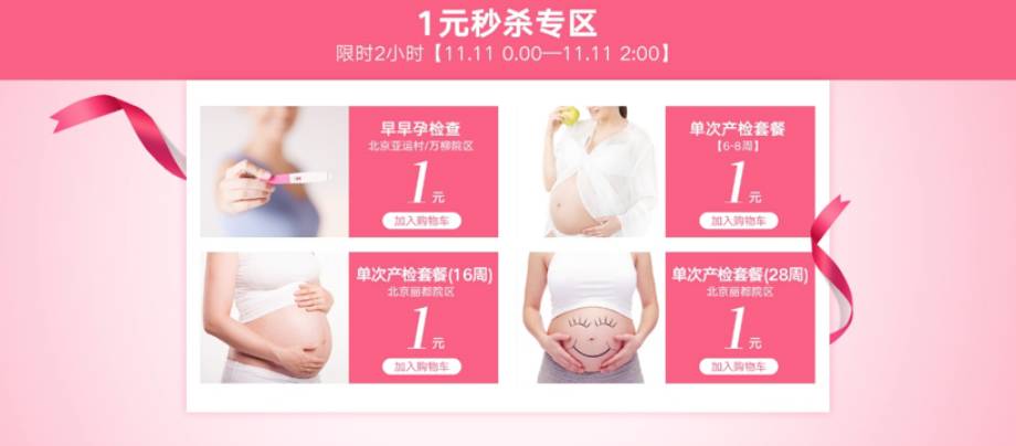 4、1元秒殺:雙十一當天1元可秒100元優(yōu)惠券/早早孕檢查/單次產檢套餐!擺好姿勢,定好鬧鐘,坐等開秒!