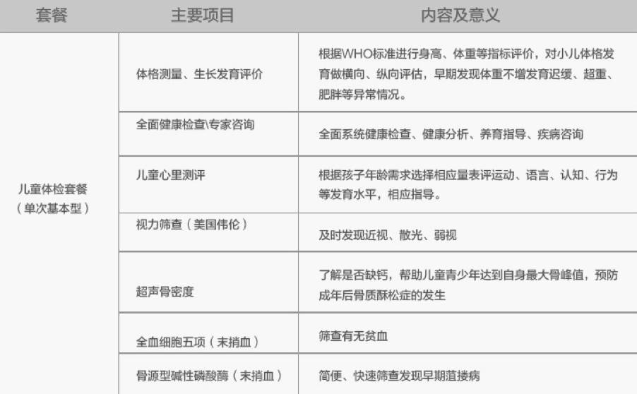 美中宜和兒童保健中心針對0-14歲不同年齡段兒童提供多樣化、全方位、個性化的兒童體檢套餐,通過體檢監控兒童基本健康指標,早期發現生理心理疾患隱患,及時進行糾正。我們不主張盲目檢查,您可根據與兒科醫生的建議選擇適合孩子的個性化體檢套餐。