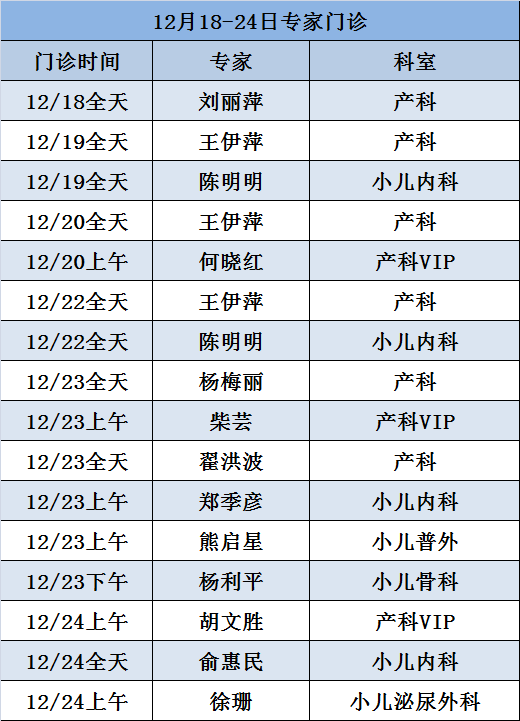 美中特聘專家出診時間播報&孕婦學校課堂安排