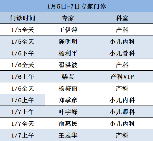 專家門診 | 美中名醫專場(1月5日-14日)&孕婦學校課堂安排