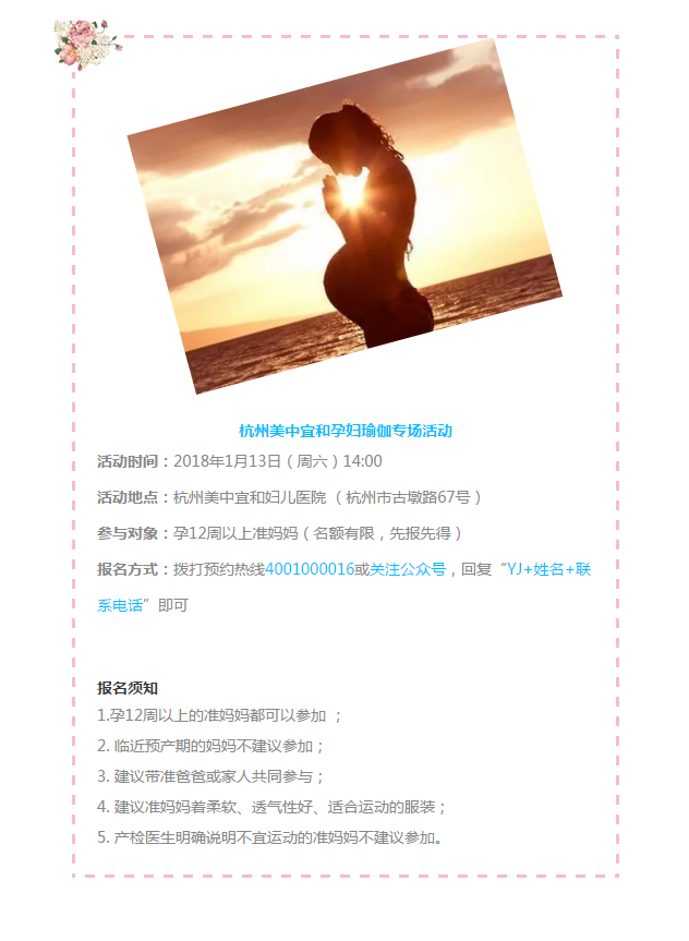 1月13日,美中宜和特別邀請瑜伽教練,與您來一場瑜伽盛宴,讓您的孕期生活輕松、愉悅,更為自然分娩加油。“好動”的孕媽,請接受小美的邀請,報名參加美中宜和特別為孕媽準備的孕期瑜伽專場活動吧。