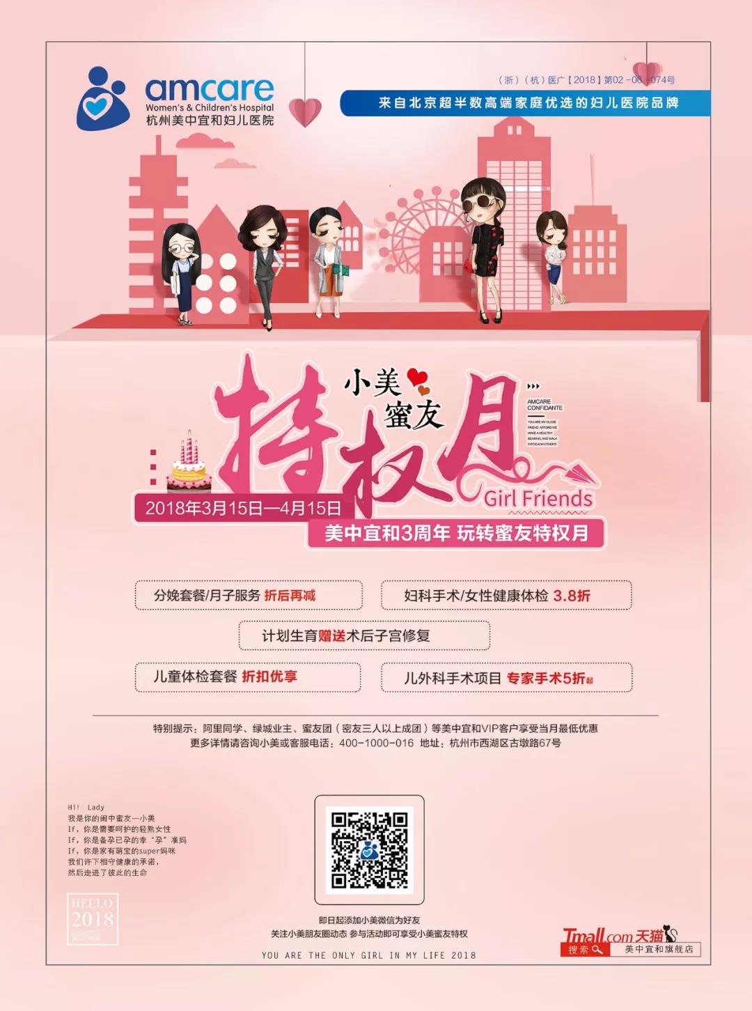 杭州美中宜和婦兒醫院3周年慶 蜜友特權月今日開啟