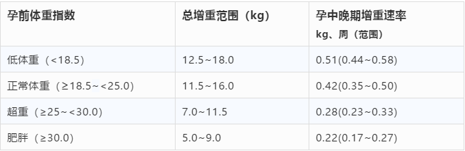 準媽媽因為個體情況的差異,要先算出自己的BMI(體重指數),即體重除以身高的平方,再根據自己的BMI來參考以下體重增長范圍: