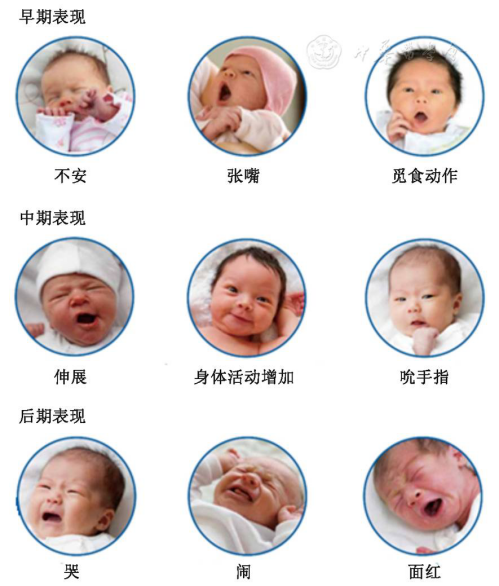 及時發現寶寶饑餓是培養良好進食習慣的關鍵。新生兒饑餓時可以出現覓食反射、吸吮動作或雙手舞動;嬰兒會出現把手放入嘴里吸吮、鬼臉、煩躁,大聲哭吵是饑餓的后信號。寶爸寶媽應該注意觀察嬰兒饑餓的早期信號,避免寶寶哭鬧后再喂哺,這會增加喂哺的困難,尤其是母乳喂養的嬰兒,哭吵會影響含吸母親乳頭。