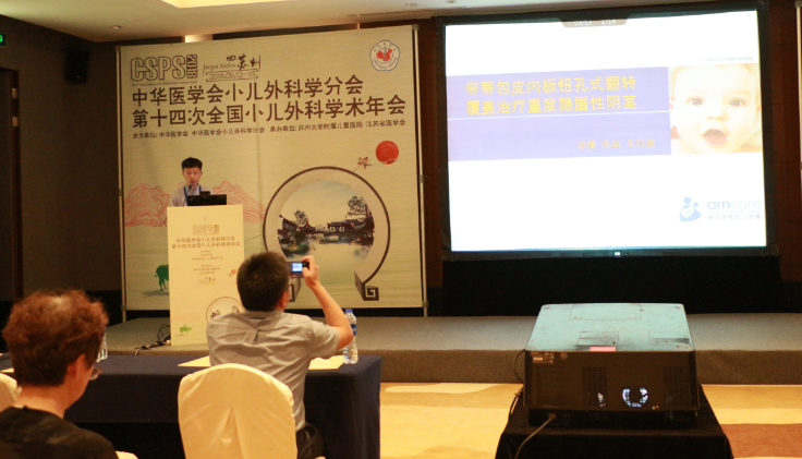 在小兒泌尿外科專場,沈晶作了“包皮內板帶蒂皮瓣翻轉技術治療重度先天性隱匿性陰莖”為主題的學術分享報告。有別于前場十余例以圖片展現手術技術特點的專家報告,美中宜和專家團隊以高清視頻記錄進行了過程演示,展示了小兒泌尿外科在隱匿性陰莖診治上的技術,體現出科室專家過硬的水平和強大的技術自信,精彩的報告贏得了在場專家們的一致贊賞。