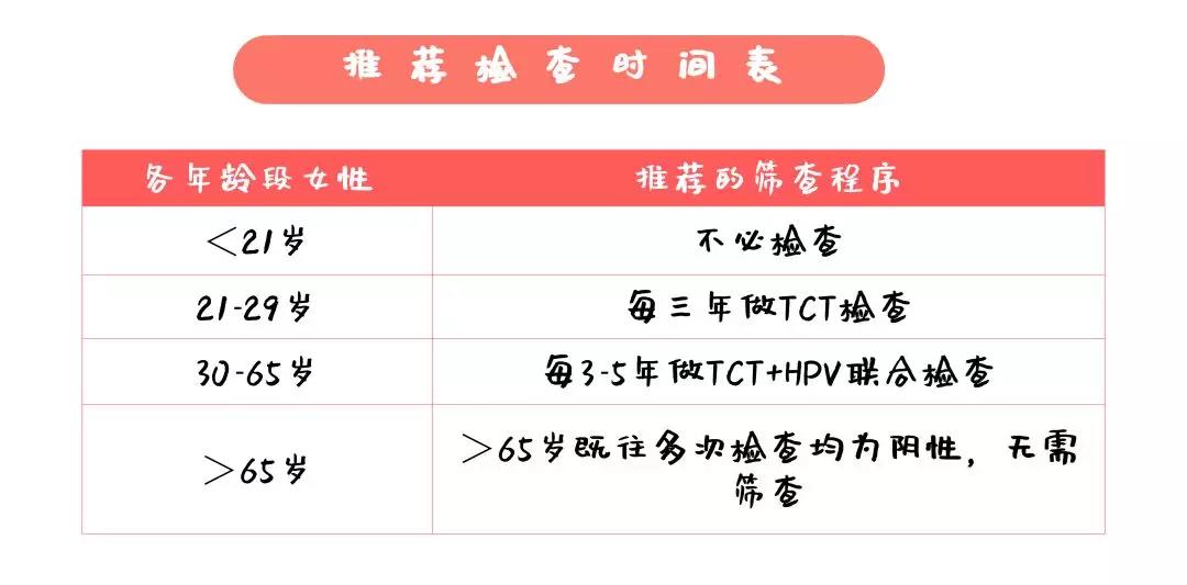 溫馨提醒:雖然推薦的檢查時(shí)間為3-5年做一次篩查,但臨床更建議每年查一次。